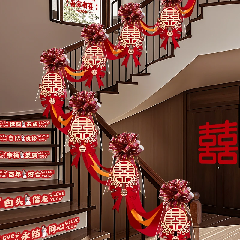 结婚楼梯扶手装饰婚房布置套装男方婚礼喜字拉花彩带婚庆用品大全