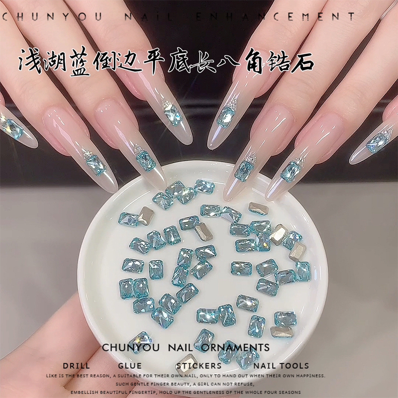 超闪平底八角锆石,优雅又高级#平底八角锆石 #浅湖蓝锆石 #八角锆石 #平底小锆石 #锆石美甲